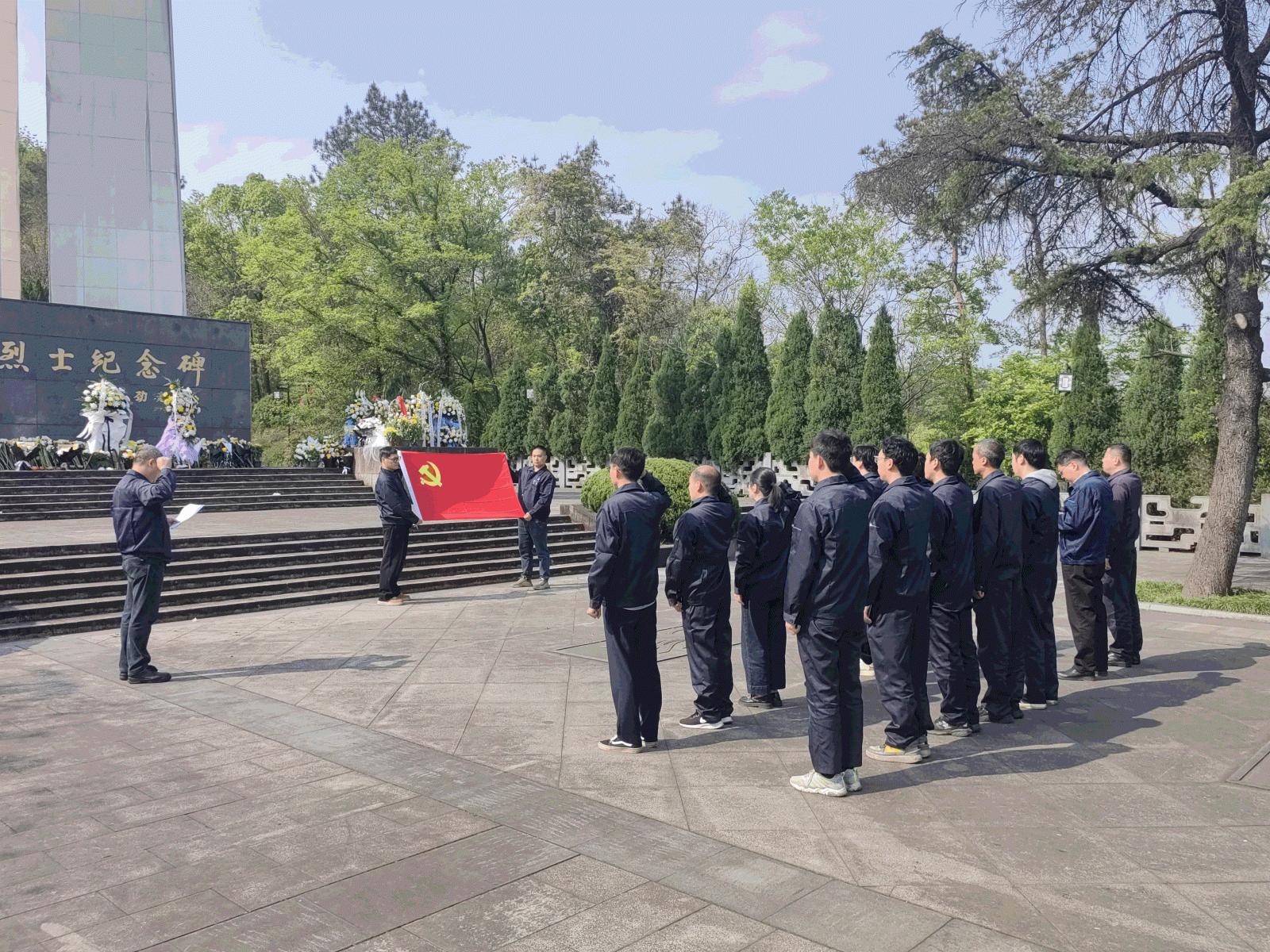 活动伊始,全体人员整齐列队于革命烈士纪念碑前,向英勇献身的烈士们敬献花篮,以表达对先烈们的崇高敬意。花篮缎带上的金色字体,寄托着对烈士们的无尽追思。